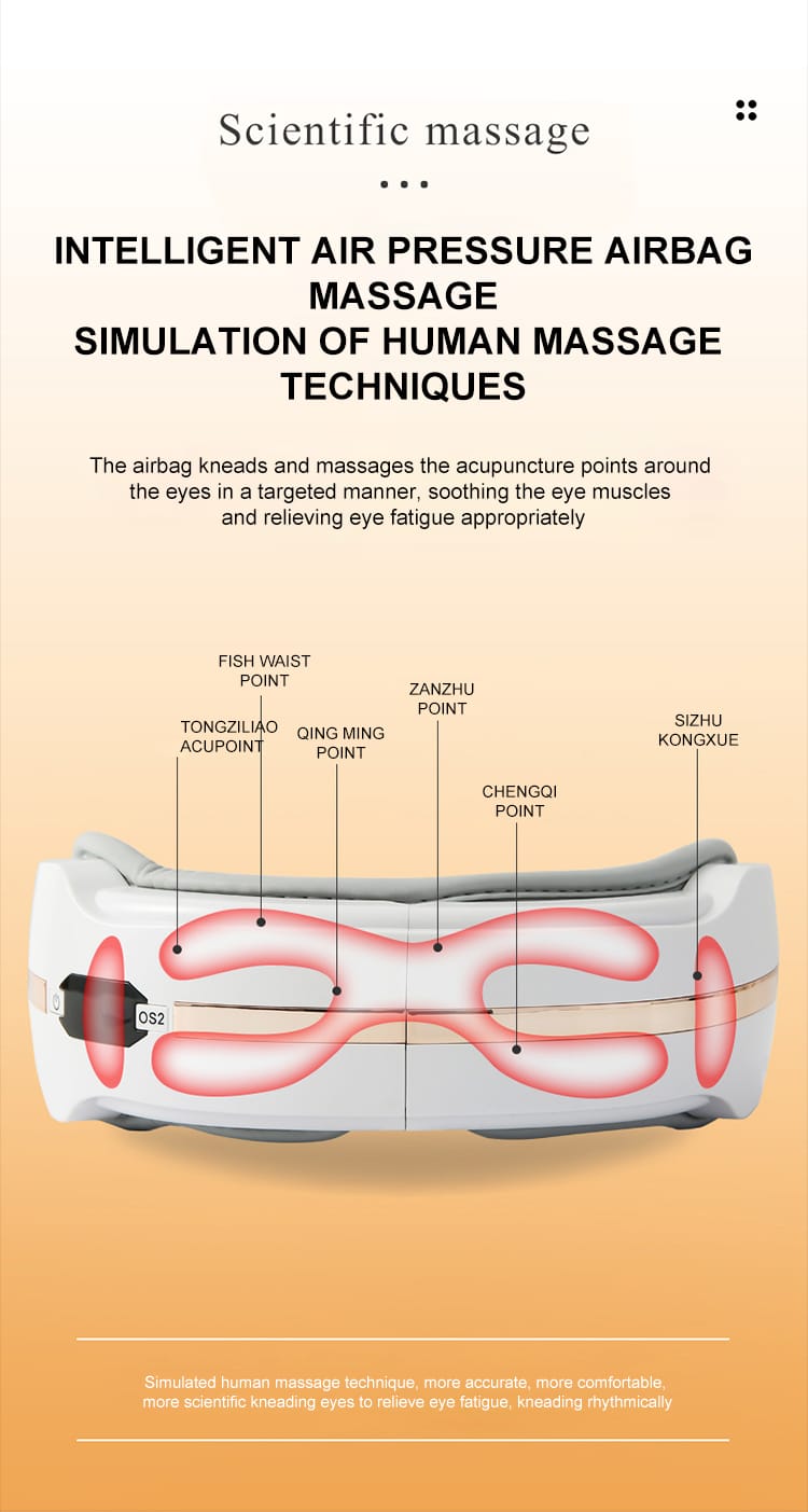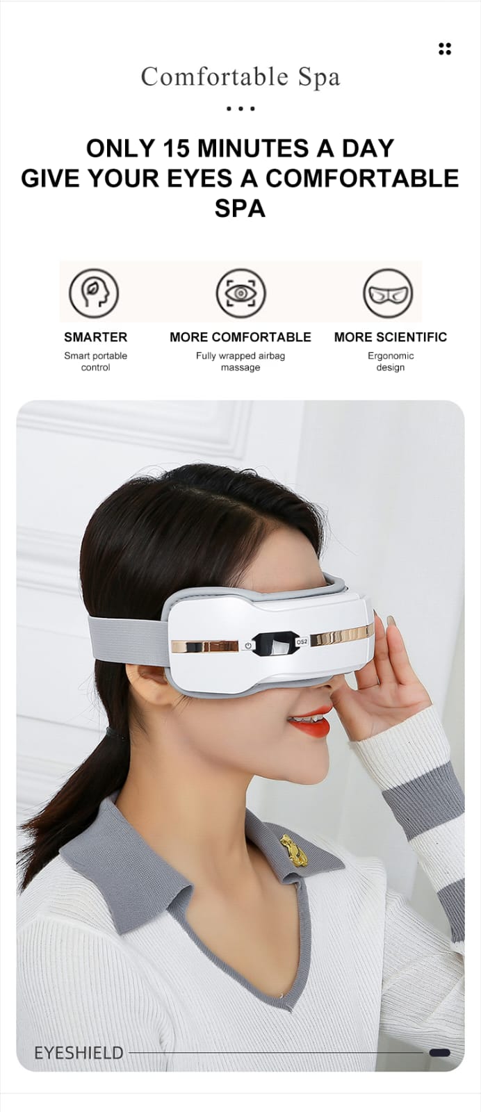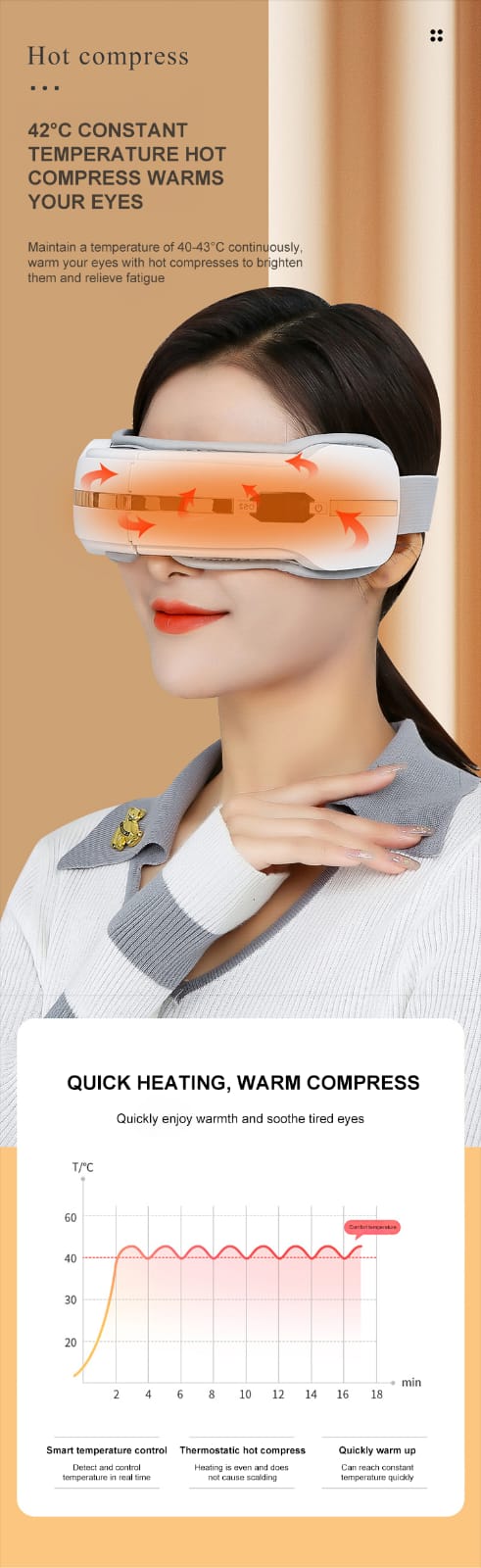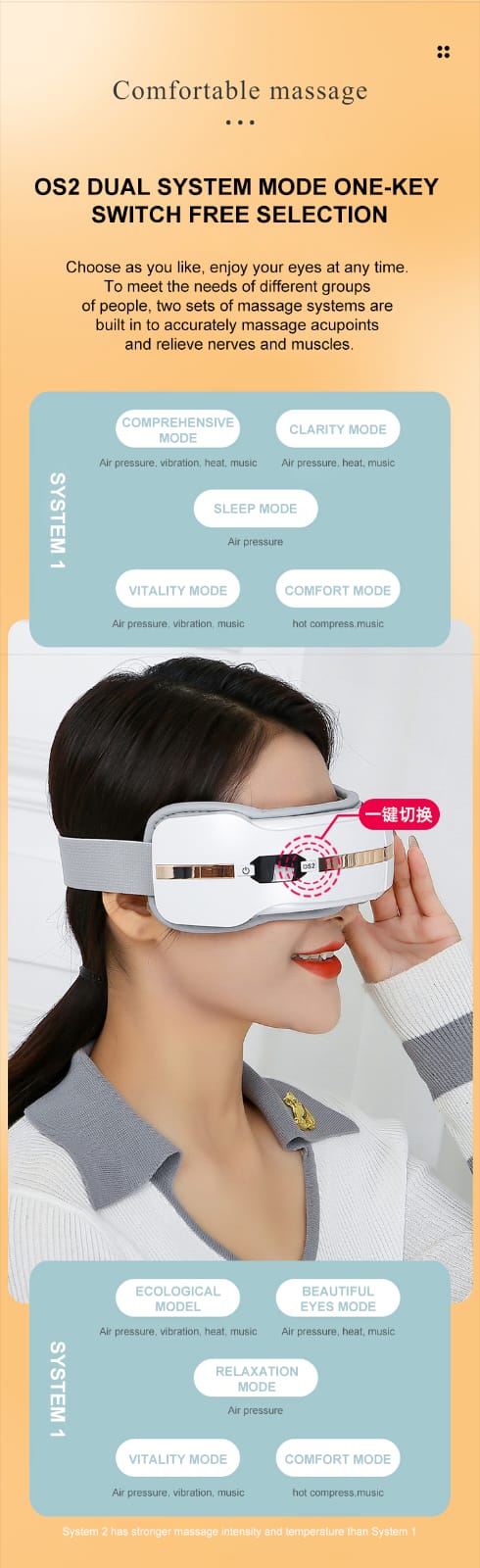 1️⃣ Air Pressure Massage: Gently targets the areas around your eyes to reduce puffiness and relieve tension, improving comfort and relaxation.