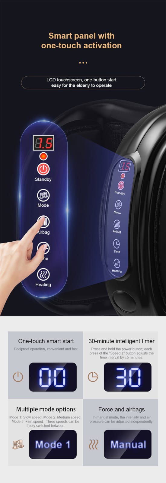 Customizable Experience: Tailor the massage experience with adjustable intensity and heat settings.