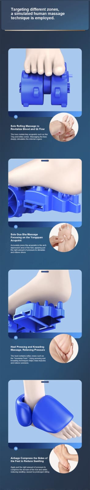 1️⃣ Multi-Zone Foot Massage: Targets key areas of your feet with precision, ensuring a relaxing and effective massage experience.